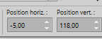 Placer Position horiz.: -5,00 (garder Position vert.: 118,00).