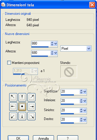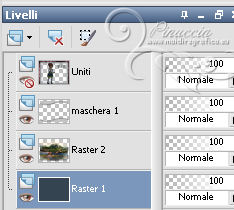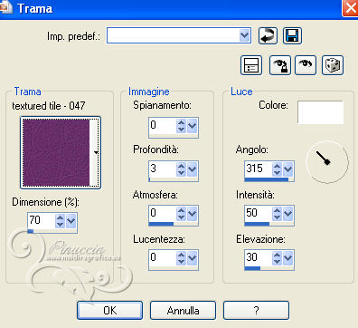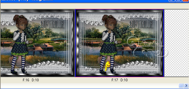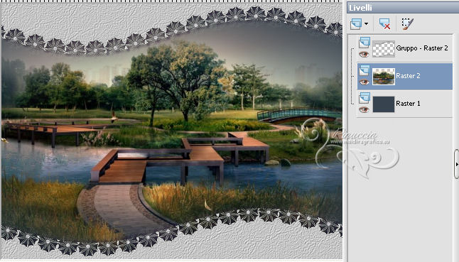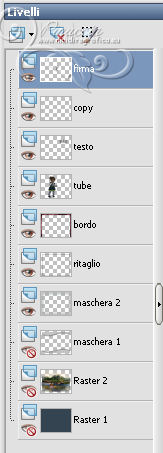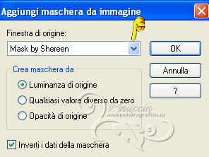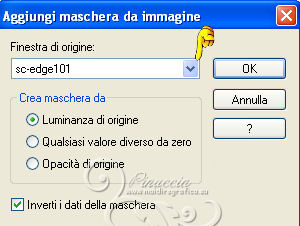 qui puoi trovare qualche risposta ai tuoi dubbi. Se l'argomento che ti interessa non è presente, ti prego di segnalarmelo. Questo tutorial è stato creato con PSP X2, ma può essere eseguito anche con le altre versioni di PSP. Per tradurlo, ho usato PSP X. Grazie ai creatori dei tubes che mettono a disposizione il loro lavoro in vari gruppi di condivisione. Rispetta il lavoro degli autori, non cambiare il nome del file e non cancellare il watermark. Occorrente: A scelta il tube di un paesaggio e di un personaggio. Il resto del materiale qui Per il poser usato grazie Lill Il tube del paesaggio è di Guismo. Animation Shop qui ![]() Apri il font e minimizzalo. Lo troverai nella lista dei font disponibili quando ti servirà. Metti la trama nella cartella trame. Apri le maschere in PSP e minimizzale con il resto del materiale. 1. Scegli due colori dal tuo tube. Imposta il colore di primo piano con il colore chiaro, e il colore di sfondo con il colore scuro. I miei colori. ![]() Apri una nuova immagine trasparente 800 x 600 pixels, e riempila con il colore di sfondo.Livelli>Nuovo livello raster. Riempi con il colore chiaro di primo piano.Livelli>Nuovo livello maschera>Da immagine. Apri il menu sotto la finestra di origine e vedrai la lista dei files aperti. Seleziona la maschera "mask by Shereen", con i seguenti settaggi: ![]() Livelli>Unisci>Unisci gruppo. Effetti>Effetti 3D>Sfalsa ombra. ![]() Ripeti l'Effetto Sfalsa ombra, cambiando verticale e orizzontale con -5. Effetti>Effetti di bordo>Aumenta. Effetti>Effetti di trama>Trama - seleziona la trama textured tile-047 (o una trama a tua scelta), con i seguenti settaggi. ![]() 2. Apri il tube del paesaggio e vai a Modifica>Copia. Torna al tuo lavoro e vai a Modifica>Incolla come nuovo livello. Livelli>Disponi>Sposta giù (sotto il livello della maschera) Il paesaggio dovrebbe coprire l'area della maschera. Ingrandisci o riduci il tube se e quanto necessario, tutti i livelli non selezionato. Eventualmente, se il tube è troppo piccolo, duplicalo e rifletti il duplicato. Non dimenticare: Regola>Messa a fuoco>Metti a fuoco. Il mio esempio. ![]() 3. Attiva il livello inferiore. Selezione>Seleziona tutto. Immagine>Ritaglia la selezione. Immagine>Dimensioni tela - 840 x 640 pixels. ![]() Attiva il livello superiore. Livelli>Nuovo livello raster. Riempi con il colore di primo piano.Livelli>Nuovo livello maschera>Da immagine. Apri il menu sotto la finestra di origine e seleziona la maschera sc-edge101, con i seguenti settaggi. ![]() Livelli>Unisci>Unisci gruppo. Effetti>Effetti di bordo>Aumenta. Effetti>Effetti 3D>Sfalsa ombra, con il colore di sfondo. ![]() 4. Attiva nuovamente il livello inferiore. Immagine>Dimensioni tela - 880 x 680 pixels. ![]() Riempi il bordo trasparente con il colore di sfondo.Attiva il livello superiore. Livelli>Nuovo livello raster. Selezione>Seleziona tutto. Apri la cornice "fantasy-21-bd10-10-10" e vai a Modifica>Copia. Torna al tuo lavoro e vai a Modifica>Incolla nella selezione. Selezione>Deseleziona. Adatta il colore della cornice ai tuoi colori con Regola>Tonalità e saturazione>Viraggio. Attiva lo strumento Bacchetta magica ![]() e clicca al centro della cornice per selezionarla. Livelli>Nuovo livello raster. Livelli>Disponi>Sposta giù (sotto il livello della cornice). Effetti>Effetti 3D>Ritaglio. ![]() Selezione>Deseleziona. Attiva nuovamente il livello superiore. 5. Apri il tuo tube e vai a Modifica>Copia. Torna al tuo lavoro e vai a Modifica>Incolla come nuovo livello. Immagine>Ridimensiona, se e quanto necessario, tutti i livelli non selezionato. Se ridimensioni: Regola>Messa a fuoco>metti a fuoco. Posiziona correttamente il tube.Effetti>Effetti 3D>Sfalsa ombra. ![]() Attiva lo strumento Testo ![]() scegli un font o usa quello fornito e scrivi un tuo testo. Aggiungi il tuo nome e/o il tuo watermark su un nuovo livello, senza dimenticare eventuali copyright delle immagini usate. Chiudi i tre livelli inferiori e attiva uno dei livelli visibili. ![]() Livelli>Unisci>Unisci visibile. Livelli>Visualizza>Tutto. Chiudi il livello Uniti e attiva uno dei livelli visibili. ![]() Livelli>Unisci>Unisci visibile. Riapri il livello chiuso. E avrai due livelli. ![]() 6. Animazione. Attiva il livello inferiore e vai a Modifica>Copia. Apri Animation Shop e vai a Modifica>Incolla>Incolla come nuova animazione. Modifica>Duplica - 5 volte e avrai una animazione composta da 17 fotogrammi. oppure clicca 5 volte sull'icona corrispondente nella barra superiore degli strumenti Clicca sul primo fotogramma per selezionarlo e vai a Modifica>Seleziona tutto. Apri l'animazione "ani-blau", anche questa composta da 17 fotogrammi. *** se vuoi cambiare il colore dell'animazione per adattarlo ai tuoi colori, apri l'animazione in PSP. Avrai un file composto da 17 livelli. Attiva il primo livello. Regola>Tonalità e saturazione>Viraggio, con i valori di Tonalità (H) e Saturazione (S) del colore scelto. Attiva uno alla volta gli altri 16 livelli, e ripeti il Viraggio con Modifica>Ripeti Ripeti. Quando ai finito, salva in formato Animation Shop (*Psp) e aprilo in Animation Shop. ![]() *** Torniamo all'animazione, che sia quella originale o quella salvata con il viraggio. Modifica>Seleziona tutto. Modifica>Copia. Attiva il tuo lavoro e vai a Modifica>Incolla>Incolla nel fotogramma selezionato. Posiziona l'immagine nell'angolo in alto a sinistra, sul fiore della maschera. ![]() Dovresti avere questo. ![]() 7. Torna in PSP e attiva il livello superiore. Modifica>Copia Unione. Torna in Animation Shop e vai a Modifica>Incolla>Incolla come nuova animazione. Modifica>Duplica, come hai fatto prima, 5 volte per ottenere 17 fotogrammi. Modifica>Seleziona tutto. Modifica>Copia. Attiva il tuo lavoro e vai a Modifica>Incolla>Incolla nel fotogramma selezionato. Posiziona correttamente l'immagine al centro. Animazione>Proprietà fotogramma, e imposta la velocità a 30. ![]() I fotogrammi sono già selezionati, comunque per essere sicuro, ripeti Modifica>Seleziona