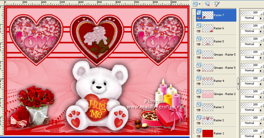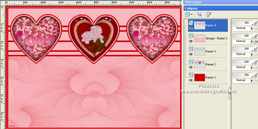Sélectionner les 3 coeurs avec l'outil Baguette magique , toujours progressivité 6.