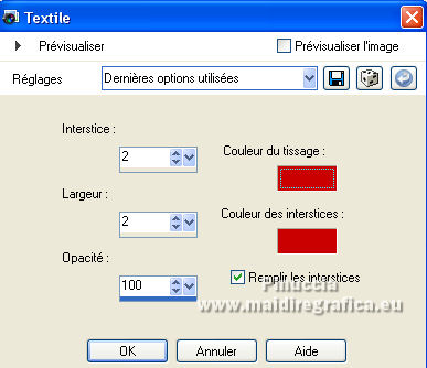 Effets>Effets de textures>Textile - les deux couleurs: votre couleur foncée.