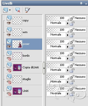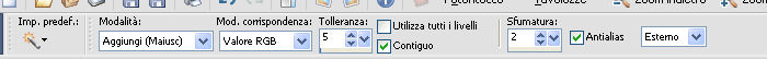 qui puoi trovare qualche risposta ai tuoi dubbi. Se l'argomento che ti interessa non è presente, ti prego di segnalarmelo. Questo tutorial è stato creato con PSP X2, ma può essere eseguito anche con le altre versioni di PSP. Per tradurlo, ho usato PSP X. Se stai usando le nuove versioni di PSP, a proposito delle funzioni Rifletti/Capovolgi, vedi la mia scheda qui Grazie ai creatori dei tubes che mettono a disposizione il loro lavoro in vari gruppi di condivisione. Rispetta il lavoro degli autori, non cambiare il nome del file e non cancellare il watermark. Occorrente: A scelta tubes di paesaggi e un personaggio, Il resto del materiale qui Per il bel poser grazie Romana Per i tubes dei paesaggi grazie Luna e Guismo. Filtri: Penta.com - Dot and Cross qui Xero - Improver qui Animation Shop qui Apri la maschera in PSP e minimizzala con il resto del materiale, tranne l'animazione che userai in Animation Shop. 1. Scegli due colori dai tuoi tubes, imposta il colore di primo piano con il colore chiaro, e il colore di sfondo con il colore scuro. I miei colori. ![]() Apri una nuova immagine trasparente 900 x 700 pixels, e riempila con il colore di sfondo.Livelli>Nuovo livello raster. Riempi con il colore di primo piano.Livelli>Nuovo livello maschera>Da immagine. Apri il menu sotto la finestra di origine e vedrai la lista dei files aperti. Seleziona la maschera "maske61©ILR". ![]() Livelli>Unisci>Unisci gruppo. Effetti>Effetti di bordo>Aumenta. 2. Attiva lo strumento Bacchetta magica ,con i seguenti settaggi: ![]() Clicca nel cerchio in alto per selezionarlo. Clicca anche più volte, se necessario per selezionare bene tutta l'area. Apri il tuo primo paesaggio e vai a Modifica>Copia. Torna al tuo lavoro e vai a Modifica>Incolla come nuovo livello. Livelli>Disponi>Sposta giù. Immagine>Ridimensiona, se e quanto necessario, tutti i livelli non selezionato. Posiziona correttamente il tube nell'area selezionata.Selezione>Inverti. Premi sulla tastiera il tasto CANC. Selezione>Deseleziona. 3. Attiva nuovamente il livello della maschera. Clicca al centro del cerchio inferiore con la bacchetta magica ![]() Apri il tuo secondo paesaggio e vai a Modifica>Copia. Torna al tuo lavoro e vai a Modifica>Incolla come nuovo livello. Livelli>Disponi>Sposta giù. Immagine>Ridimensiona, se e quanto necessario, tutti i livelli non selezionato. Posiziona correttamente il tube nell'area selezionata.Selezione>Inverti. Premi sulla tastiera il tasto CANC. Selezione>Deseleziona. 4. Attiva nuovamente il livello della maschera. Clicca al centro del rettangolo a destra con la bacchetta magica ![]() Apri il tuo terzo paesaggio e vai a Modifica>Copia. Torna al tuo lavoro e vai a Modifica>Incolla come nuovo livello. Livelli>Disponi>Sposta giù. Immagine>Ridimensiona, se e quanto necessario, tutti i livelli non selezionato. Posiziona correttamente il tube nell'area selezionata.Selezione>Inverti. Premi sulla tastiera il tasto CANC. Selezione>Deseleziona. Sui tre livelli dei tubes: Effetti>Plugins>Xero - Improver. ![]() Attiva il livello della maschera. Effetti>Effetti 3D>Sfalsa ombra. ![]() 5. Livelli>Unisci>Unisci visibile. Livelli>Duplica. Immagine>Ridimensiona, al 90%, tutti i livelli non selezionato. Attiva il livello inferiore. Regola>Sfocatura>Sfocatura gaussiana - raggio 5. ![]() Effetti>Plugins>Penta.com - Dot and Cross. ![]() Attiva il livello superiore. Effetti>Effetti 3D>Sfalsa ombra, con un colore scuro scelto dall'immagine. ![]() Ripeti l'Effetto Sfalsa ombra, cambiando verticale e orizzontale con -10. 6. Livelli>Nuovo livello raster. Selezione>Seleziona tutto. Riempi il livello con il colore di primo piano.Selezione>Modifica>Contrai - 5 pixels. ![]() Riempi con il colore di sfondo.Selezione>Modifica>Contrai - 3 pixels. Riempi con il colore di primo piano.Selezione>Modifica>Contrai - 5 pixels. Premi sulla tastiera il tasto CANC ![]() Livelli>Nuovo livello raster. Effetti>Effetti 3D>Ritaglio. ![]() Selezione>Deseleziona. 7. Apri il tuo tube e vai a Modifica>Copia. Torna al tuo lavoro e vai a Modifica>Incolla come nuovo livello. Immagine>Ridimensiona, se e quanto necessario, tutti i livelli non selezionato. Effetti>Plugins>Xero - Improver, con i settaggi precedenti. Sposta il tube a destra, o dove preferisci.Effetti>Effetti 3D>Sfalsa ombra. ![]() Aggiungi il tuo nome e/o il tuo watermark su un nuovo livello, senza dimenticare eventuali copyright delle immagini usate. ![]() Chiudi i tre livelli superiori. ![]() Modifica>Copia Unione. Apri Animation Shop e vai a Modifica>Incolla>Incolla come nuova animazione. Modifica>Duplica, e ripeti finchè non avrai 12 fotogrammi. Clicca sul primo fotogramma per selezionarlo e vai a Modifica>Seleziona tutto. Apri l'animazione Sternenabu©ILR. Elimina il primo fotogramma nero, e adesso anche questa animazione sarà composta da 12 fotogrammi. Modifica>Seleziona tutto. Modifica>Copia. Attiva il tuo lavoro e vai a Modifica>Incolla>Incolla nel fotogramma selezionato. Posiziona l'animazione al centro del bordo del cerchio superiore. ![]() Attiva nuovamente l'animazione. Animazione>Rifletti. Modifica>Copia. Attiva il tuo lavoro e vai a Modifica>Incolla>Incolla nel fotogramma selezionato. Posiziona l'animazione al centro del bordo del cerchio inferiore. ![]() E avrai questo. ![]() Torna in PSP. Chiudi i quattro livelli inferiori e apri i tre livelli superiori. ![]() Modifica>Copia Unione. Torna in Animation Shop e vai a Modifica>Incolla>Incolla come nuova animazione. Modifica>Duplica e ripeti finchè non avrai 12 fotogrammi. Modifica>Seleziona tutto. Modifica>Copia. Attiva il tuo lavoro e vai a Modifica>Incolla>Incolla nel fotogramma selezionato. Posiziona correttamente l'immagine al centro. ![]() Controlla il risultato cliccando su Visualizza e salva in formato gif.Se vuoi ridurre il peso della tua animazione, vedi qui ![]() Se hai problemi o dubbi, o trovi un link non funzionante, o anche soltanto per un saluto, scrivimi. 21 Giugno 2013 |