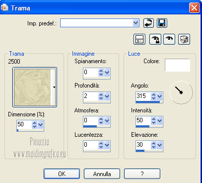 Effetti>Effetti di trama>Trama - seleziona la trama "2500" con i seguenti settaggi.