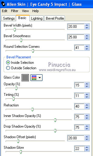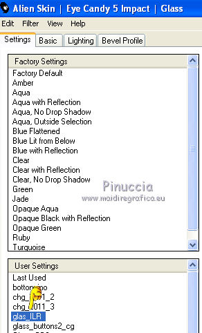 Effetti>Plugins>Alien Skin Eye Candy 5 Impact - Glass, con i settaggi precedenti.