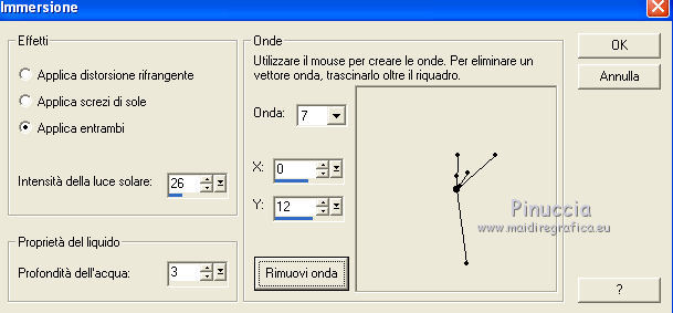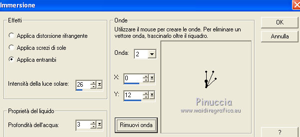Nell'esempio è selezionato l'Effetto "Applica entrambi" (cioè sia distorsione rifrangente e screzi di sole);