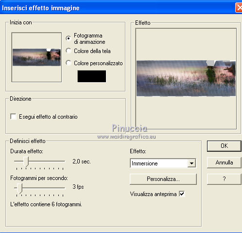 Effetti>Inserisci effetto immagine - e seleziona Immersione, con i seguenti settaggi.