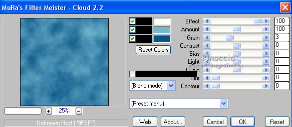 Premere successivamente il tasto Reset serve per cambiare casualmente (ragione per la quale il tuo risultato non potrà essere uguale al mio esempio, l'aspetto delle nuvole.