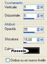 Effetti>Effetti 3D>Sfalsa ombra, con i settaggi precedenti.