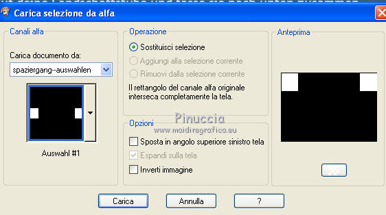 Apri "spaziergang-auswahlen" in PSP e minimizzala. Questa immagine non è vuota, ma contiene una selezione salvata sul canale alfa.