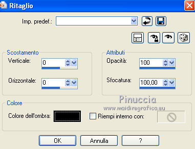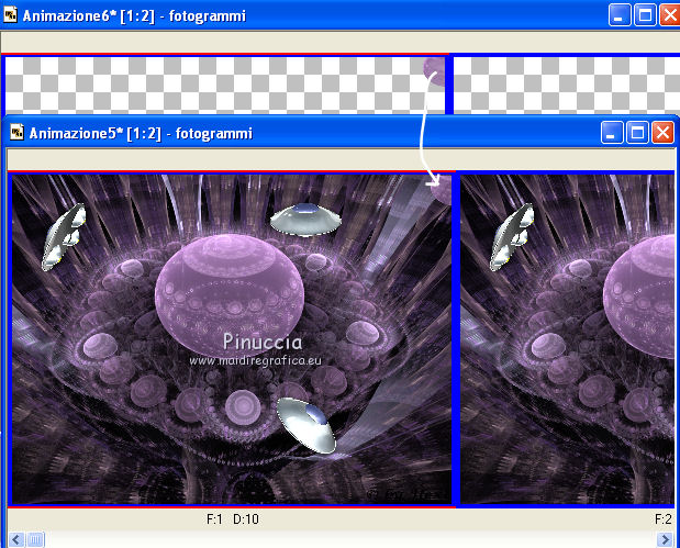 qui puoi trovare qualche risposta ai tuoi dubbi. Se l'argomento che ti interessa non è presente, ti prego di segnalarmelo. Questo tutorial è stato creato con PSP X2, ma può essere eseguito anche con le altre versioni di PSP. Per tradurlo, ho usato PSP X. Il materiale viene da vari gruppi di condivisione. Il copyright appartiene ai rispettivi autori. Grazie ai creatori dei tubes che mettono a disposizione il loro lavoro in vari gruppi di condivisione. Rispetta il lavoro degli autori, non cambiare il nome del file e non cancellare il watermark. Occorrente: Due tubes a scelta. Il resto del materiale qui Per i poser utilizzati grazie Bigi e Lill Per il frattale grazie Hexi Filtri Xero - Improver qui Animation Shop qui 1. Apri una nuova immagine trasparente 800 x 600 pixels, e riempila con il colore nero.Apri "Apo_mix_hexi_047" e vai a Modifica>Copia. Torna al tuo lavoro e vai a Modifica>Incolla come nuovo livello. se il copyright ti disturba, attiva lo strumento Gomma ![]() e cancellalo con cautela. Per il mio esempio non l'ho ritenuto necessario Livelli>Unisci>Unisci visibile. Copia e incolla sul tuo lavoro i tre "ufo". Immagine>Ridimensiona, al 35%, tutti i livelli non selezionato. Posiziona i tubes come preferisci,o vedi il mio esempio. ![]() Su tutti e tre i livelli: Effetti>Plugins>Xero - Improver. ![]() Effetti>Effetti 3D>Sfalsa ombra. ![]() 2. Copia e incolla sul tuo lavoro i due tubes. Immagine>Ridimensiona, se e quanto necessario. Su entrambi i livelli: Effetti>Plugins>Xero - Improver, con i settaggi precedenti. Effetti>Effetti 3D>Sfalsa ombra, con i settaggi precedenti. Attiva il livello inferiore. Selezione>Seleziona tutto. Selezione>Modifica>Contrai - 10 pixels. ![]() Selezione>Inverti. Modifica>Copia. Attiva il livello superiore. Modifica>Incolla come nuovo livello. Selezione>Inverti. Effetti>Effetti 3D>Ritaglio. ![]() Selezione>Deseleziona. Apri il file con il testo - o, se preferisci, usa un tuo testo, e vai a Modifica>Copia. Torna al tuo lavoro e vai a Modifica>Incolla come nuovo livello. Posiziona il testo dove preferisci o vedi il mio esempio.Aggiungi il tuo nome e/o il tuo copyright su un nuovo livello, senza dimenticare il copyright delle immagini usate. 3. Animazione. Chiudi il livello di sfondo e i livelli degli ufo. Attiva il livello superiore. Livelli>Unisci>Unisci visibile. Chiudi questo livello Uniti. Riapri il livello Uniti e il livello degli ufo. Livelli>Unisci>Unisci visibile. Modifica>Copia. Apri Animation Shop e vai a Modifica>Incolla>Incolla come nuova animazione. Modifica>Duplica, e ripeti finchè non avrai 26 fotogrammi, in modo da avere un fotogramma in più della animazione che dovrai unire). per il mio esempio non ho aggiunto il fotogramma 26, perchè alla fine creava un piccolo "salto" Clicca sul primo fotogramma per selezionarlo e vai a Modifica>Seleziona tutto. Apri l'animazione "Animation©IL", composta da 25 fotogrammi. Modifica>Seleziona tutto. Modifica>Copia. Attiva il tuo lavoro e vai a Modifica>Incolla>Incolla nel fotogramma selezionato. Posiziona l'animazione nell'angolo in alto a destra. ![]() A volte può capitare che la memoria del computer rallenti o impedisca l'aggiunta dell'animazione. In questo caso, puoi usare il trascinamento. Dopo aver selezionato le due animazioni, tieni premuto il mouse sull'animazione da aggiungere, e trascinala sul tuo lavoro, nel punto esatto in cui si trova nell'originale. ![]() Risultato: ![]() Torna in PSP. Attiva il livello superiore Uniti e vai a Modifica>Copia. Torna in Animation Shop e vai a Modifica>Incolla>Incolla come nuova animazione. Modifica>Duplica, finchè non avrai 26 fotogrammi. Modifica>Seleziona tutto. Modifica>Copia. Attiva il tuo lavoro e vai a Modifica>Incolla>Incolla nel fotogramma selezionato. Posiziona l'immagine esattamente al centro facendo coincidere il bordo con i limiti del tuo lavoro. In caso di errore, vai a Modifica>Annulla Incolla e ripeti. Quando sei soddisfatto: Animazione>Proprietà fotogramma, e imposta la velocità a 13. Clicca sull'ultimo fotogramma per selezionarlo. Animazione>Proprietà fotogramma e imposta la velocità a 300. Controlla il risultato cliccando su Visualizza e salva in formato gif.![]() Se hai problemi o dubbi, o trovi un link non funzionante, o anche soltanto per un saluto, scrivimi. 12 Settembre 2012 |