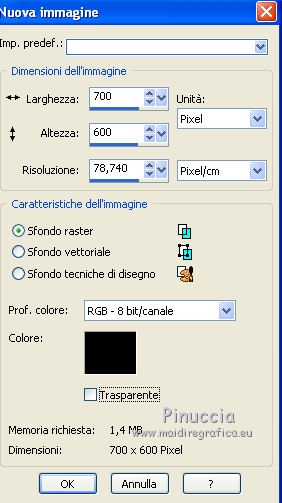 1. Apri una nuova immagine nera 700 x 600 pixels.
