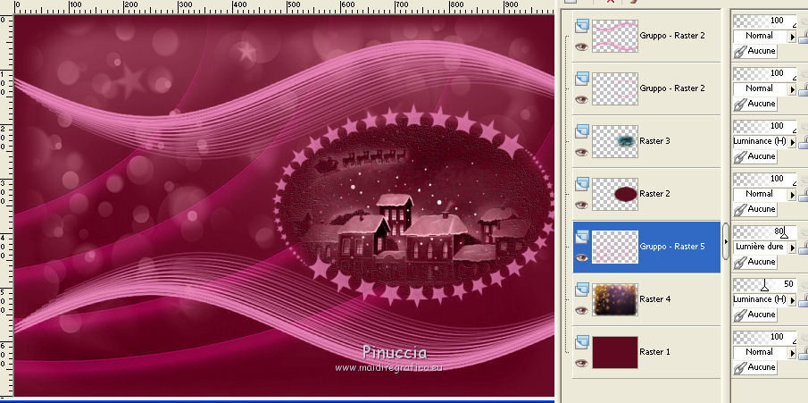 Placer le calque en mode Lumière dure et réduire l'opacité à 80%.