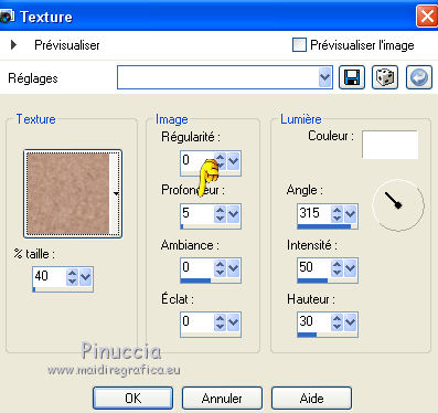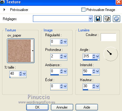 Effets>Effets de textures>Texture, Sélectionner la texture ov_paper, ou une votre texture à choix.