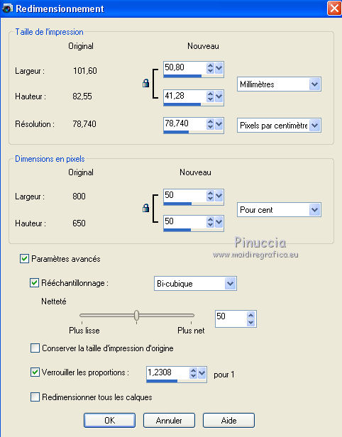 Image>Redimensionner, à 50%, redimensionner tous les calques décoché.