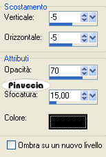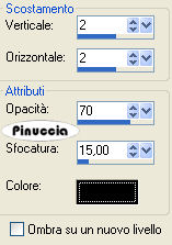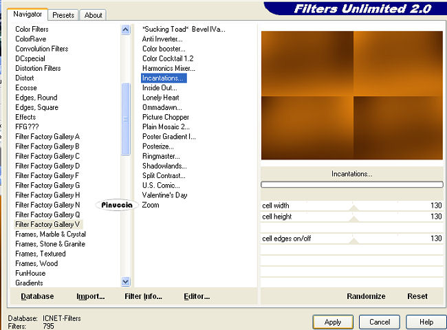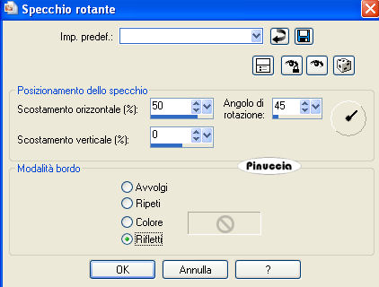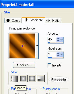 qui puoi trovare qualche risposta ai tuoi dubbi. Se l'argomento che ti interessa non è presente, ti prego di segnalarmelo. Per tradurre questo tutorial ho usato PSP X. Occorrente: Materiale qui I tubes sono di Maxyran, Marif, Nyndra e JCW. Filtri: Filters Factory Gallery V qui I filtri Factory Gallery per essere usati devono prima essere convertiti. Come fare vedi qui Si usano importandoli in Filters Unlimited (come fare vedi qui) ma possono funzionare anche da soli ![]() Imposta il colore di primo piano con #3f1902, e il colore di sfondo con #f38d11. Passa il colore di sfondo a Gradiente di primo piano/sfondo con i seguenti settaggi: ![]() 1. Apri una nuova immagine trasparente 700 x 500 pixels, e riempila con il gradiente di sfondo.2. Regola>Sfocatura>Sfocatura gaussiana - raggio 25. ![]() 3. Effetti>Plugins>Fitler Factory Gallery V - Incantations: ![]() 4. Effetti>Effetti di bordo>Aumenta di più. 5. Selezione>seleziona tutto. Selezione>Modifica>Contrai - 50 pixels. 6. Effetti>Effetti di riflesso>Specchio rotante: ![]() 7. Effetti>Effetti 3D>Sfalsa ombra. ![]() Ripeti l'Effeto Sfalsa ombra, cambiando verticale e orizzontale con -2. Selezione>Deseleziona. 8. Apri il tube di Marif e vai a Modifica>Copia. Torna al tuo lavoro e vai a Modifica>Incolla come nuovo livello. Sposta il tube come nell'esempio.![]() 9. Apri il tube con lo scoiattolo e vai a Modifica>Copia. Torna al tuo lavoro e vai a Modifica>Incolla come nuovo livello. Sposta il tube nell'angolo in alto a destra.10. Attiva lo strumento Selezione , rettangolo,e seleziona la parte del tube esterna alla cornice. ![]() 11. Premi sulla tastiera il tasto CANC. Selezione>Deseleziona. 12. Apri il tube con la donna e vai a Modifica>Copia. Torna al tuo lavoro e vai a Modifica>Incolla come nuovo livello. Sposta il tube un po' più a sinistra.13. Effetti>Effetti 3D>Sfalsa ombra: ![]() 14. Apri il tube autumn-tekst, e vai a Modifica>Copia. Torna al tuo lavoro e vai a Modifica>Incolla come nuovo livello. Sposta il tube a destra, pressappoco come nel mio esempio.(oppure, se preferisci, scrivi un tuo testo). 15. Controlla che tutto sia al posto giusto e vai a Livelli>Unisci>Unisci tutto. 16. Immagine>Aggiungi bordatura, 1 pixel, simmetriche, con il colore di sfondo. Immagine>Aggiungi bordatura, 20 pixels, simmetriche, con il colore di primo piano. Seleziona questo bordo con la bacchetta magica ![]() e riempilo con il gradiente.17. Effetti>Effetti di trama>Veneziana. ![]() 18. Selezione>Deseleziona. 19. Immagine>Aggiungi bordatura, 1 pixel, simmetriche, con il colore di sfondo. 20. Apri il tube con i carciofi. Immagine>Ridimensiona, a 200 pixels di larghezza. Modifica>Copia. Torna al tuo lavoro e vai a Modifica>Incolla come nuovo livello. Sposta il tube nell'angolo in basso a destra.21. Attiva lo strumento Gomma ![]() e cancella il piccolo pezzo di ramo a sinistra. ![]() 22. Effetti>Effetti 3D>Sfalsa ombra: ![]() 23. Livelli>Unisci>Unisci tutto. L'immagine è finita. Per lo script ti servono anche due immagini di sfondo. Per realizzare lo script - che trovi qui puoi seguire i soliti preliminari descritti alla fine di questo tutorial, e sostituire le immagini, con le dovute variazioni, come spiegato nei precedenti tutorial. Se hai problemi o dubbi, o trovi un link non funzionante, o anche soltanto per un saluto, scrivimi. 15 Ottobre 2009 |