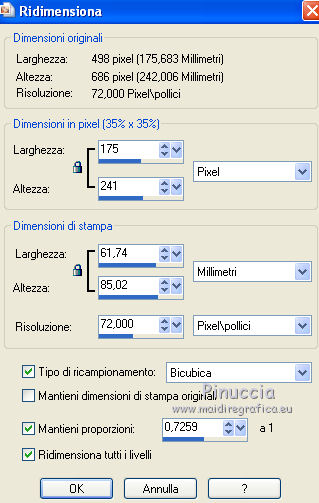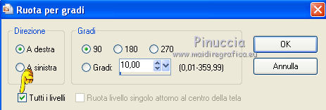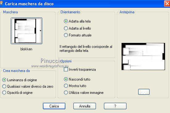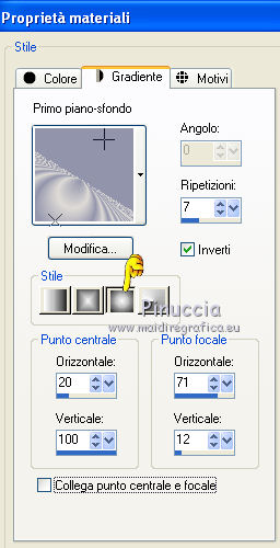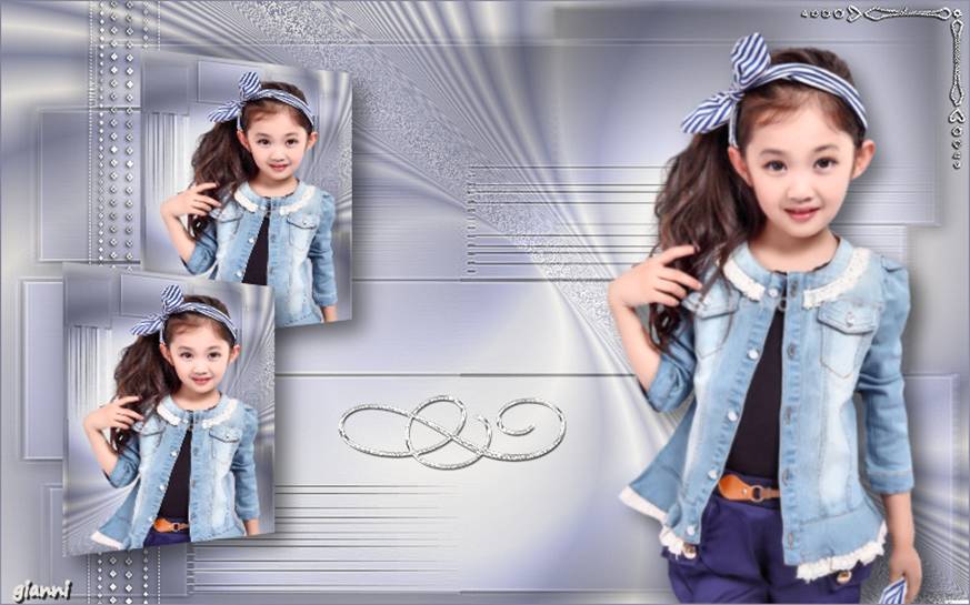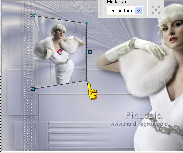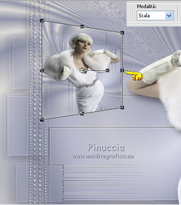 qui puoi trovare qualche risposta ai tuoi dubbi. Se l'argomento che ti interessa non è presente, ti prego di segnalarmelo. Per tradurre questo tutorial ho usato PSP X. Occorrente: Materiale qui Il bel tube della donna è di Friemelien. Filtri: se hai problemi con i filtri, ricorda di consultare la mia sezione filtri qui Greg's Factory Output qui ![]() Metti "Blokken" nella cartella Maschere. Apri il resto del materiale in PSP. Imposta il colore di primo piano con #dedbd6, e il colore di sfondo con #9294ac. Passa il colore di primo piano a Gradiente. ![]() 1. Apri una nuova immagine trasparente 800 x 500 pixels, e riempila con il gradiente.2. Clicca nella parte colorata a destra con la bacchetta magica , per selezionarla.![]() Premi sulla tastiera il tasto CANC. Selezione>Deseleziona. 3. Livelli>Duplica. Immagine>Rifletti. Immagine>Capovolgi. Sposta la parte a destra in modo che i bordi interni si sovrappongano.Se necessario: Livelli>Disponi>Porta sotto. ![]() Livelli>Unisci>Unisci visibile. 4. Livelli>Nuovo livello raster. Riempi con il colore di sfondo.5. Effetti>Plugins>Greg's Factory Output II - Poolshadow. ![]() 6. Livelli>Carica/Salva maschera>Carica maschera da disco. Cerca e carica "Blokken". ![]() Livelli>Unisci>Unisci gruppo. 7. Effetti>Effetti 3D>Sfalsa ombra. ![]() 8. Effetti>Effetti di bordo>Aumenta. Abbassa l'opacità di questo livello al 50%. Livelli>Unisci>Unisci visibile. 11. Duplica il lavoro usando la combinazione di tasti maiuscola+D e metti da parte l'originale. 12. Sulla copia: Immagine>Ruota per gradi - 90 gradi a destra, tutti i livelli selezionato. ![]() 13. Apri il tube della donna e vai a Modifica>Copia. Torna all'immagine ruotata e vai a Modifica>Incolla come nuovo livello. Sposta il tube un po' più in alto.Livelli>Unisci>Unisci visibile. 14. Attiva lo strumento Selezione , rettangolo,e traccia una selezione come nell'esempio. ![]() Modifica>Copia. Modifica>Incolla come nuova IMMAGINE. 15. Immagine>Ridimensiona, a 175 pixels di larghezza (l'altezza sarà ridimensionata proporzionalmente). ![]() Immagine>Aggiungi bordatura, 1 pixel, simmetriche, con il colore di primo piano. Immagine>Rifletti. 16. Minimizza per il momento questa piccola immagine. Attiva nuovamente il tube della donna e vai a Modifica>Copia. Attiva il lavoro originale lasciato in sospeso al punto 11 e vai a Modifica>Incolla come nuovo livello. Sposta il tube a destra, come nel mio esempio.17. Effetti>Effetti 3D>Sfalsa ombra. ![]() 18. Apri il tube sierrand_jeannette e vai Modifica>Copia. Torna al tuo lavoro e vai a Modifica>Incolla come nuovo livello. Immagine>Ruota per gradi - 90 gradi a destra. ![]() Sposta il tube a sinistra.19. Attiva la piccola immagine lasciata in sospeso al punto 16 e vai a Modifica>Copia. Torna al tuo lavoro e vai a Modifica>Incolla come nuovo livello. Spostala in alto a sinistra.20. Premi il tasto D (valido per tutte le versioni di PSP) per attivare lo strumento Deformazione ![]() e, in modalità Prospettiva, spingi il nodo esterno a destra verso l'interno, simmetricamente si sposterà anche il nodo opposto. ![]() Nel mio esempio, in modalità Scala, usando il nodo centrale, ho allargato un po' l'immagine. ![]() 21. Effetti>Effetti 3D>Sfalsa ombra. ![]() 22. Livelli>Duplica. Sposta l'immagine un po' più in basso e a sinistra.23. Apri il tube "krul" e vai a Modifica>Copia. Torna al tuo lavoro e vai a Modifica>Incolla come nuovo livello. Spostalo in basso al centro.24. Apri il tube con l'angolo e vai a Modifica>Copia. Torna al tuo lavoro e vai a Modifica>Incolla come nuovo livello. Regola>Messa a fuoco>Metti a fuoco. Spostalo nell'angolo in alto a destra.25. Controlla che tutto sia correttamente posizionato, e vai a Livelli>Unisci>Unisci tutto. 26. Immagine>Aggiungi bordatura, 1 pixel, simmetriche, con il colore di primo piano. L'immagine principale è finita. Per lo script, oltre all'immagine servono tre immagini di sfondo. Per realizzare lo script - che trovi qui puoi seguire i soliti preliminari descritti alla fine di questo tutorial, e sostituire le immagini, con le dovute variazioni, come spiegato nei precedenti tutorial. ![]() Le vostre versioni. Grazie ![]() Danièle ![]() Gianni Se hai problemi o dubbi, o trovi un link non funzionante, o anche soltanto per un saluto, scrivimi. 14 Marzo 2012 |