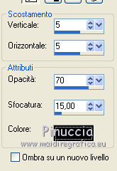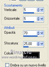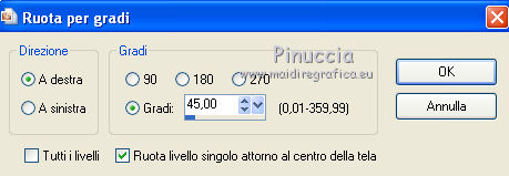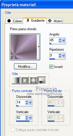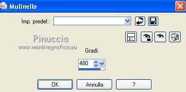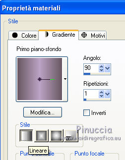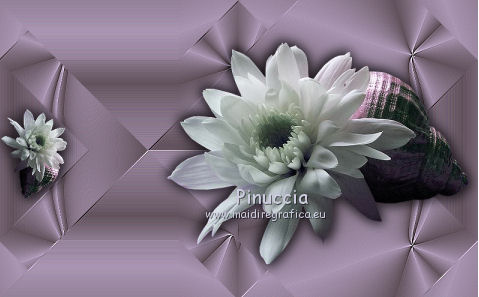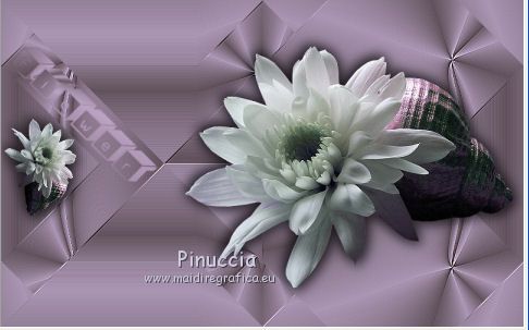 qui puoi trovare qualche risposta ai tuoi dubbi. Se l'argomento che ti interessa non è presente, ti prego di segnalarmelo. Per tradurre questo tutorial ho usato PSP X. Occorrente: Materiale qui Il tube è di Friemelien. Filtri: se hai problemi con i filtri, ricorda di consultare la mia sezione filtri qui Simple qui FM Tile Tools - Blend Emboss qui ![]() Apri il font e minimizzalo. Lo troverai nella lista dei font disponibili quando ti servirà. Imposta il colore di primo piano con #695763, e il colore di sfondo con #bba4c5. Passa il colore di primo piano a Gradiente. ![]() Passa il colore di sfondo a Gradiente. ![]() ![]() 1. Apri una nuova immagine trasparente 800 x 500 pixels, e riempila con il gradiente di sfondo.2. Effetti>Effetti di bordo>Aumenta. 3. Effetti>Effetti di distorsione>Mulinello. ![]() 4. Effetti>Plugins>Simple - Blintz. Effetti>Plugins>Simple - Pizza Slice Mirror. 5. Effetti>Plugins>FM Tile Tools - Blend Emboss - 2 volte con i settaggi standard. ![]() 6. Apri il tube con il fiore e vai a Modifica>Copia. Torna al tuo lavoro e vai a Modifica>Incolla come nuovo livello. Spostalo a destra.7. Effetti>Effetti 3D>Sfalsa ombra. ![]() Ripeti l'Effetto Sfalsa ombra, cambiando verticale e orizzontale con -5. 8. Apri nuovamente il tube del fiore. Immagine>Ridimensiona, a 150 pixels di larghezza. Modifica>Copia. Torna al tuo lavoro e vai a Modifica>Incolla come nuovo livello. Immagine>Ruota per gradi - 90 gradi a destra. ![]() Sposta il fiore nel triangolo a sinistra.![]() Effetti>Effetti 3D>Sfalsa ombra, come al punto 7. Regola>Messa a fuoco>Metti a fuoco. 9. Controlla che tutto sia correttamente posizionato. Livelli>Unisci>Unisci visibile. 10. Attiva lo strumento Testo con i seguenti settaggi.![]() Scrivi Flower. Selezione>Innalza selezione a livello. Selezione>Deseleziona. 11. Immagine>Ruota per gradi - 45 gradi a destra. ![]() Sposta il testo come nel mio esempio.![]() Effetti>Effetti 3D>Sfalsa ombra. ![]() Regola>Messa a fuoco>Metti a fuoco. 12. Scrivi For You. Selezione>Innalza selezione a livello. Selezione>Deseleziona. Sposta questo testo in basso, come nel mio esempio.Effetti>Effetti 3D>Sfalsa ombra, con i settaggi precedenti. Regola>Messa a fuoco>Metti a fuoco. 13. Apri il tube CLDesign_Drop, che è composto da diversi livelli. Scegli le gocce e copia e incolla sul tuo lavoro i corrispondenti livelli. Posiziona le gocce sotto il fiore(vedi il mio esempio per orientarti. Chiudi il livello di sfondo. Livelli>Unisci>Unisci visibile. Effetti>Effetti 3D>Sfalsa ombra, con i settaggi precedenti. Regola>Messa a fuoco>Metti a fuoco. Riapri il livello di sfondo. Livelli>Unisci>Unisci tutto. 14. Immagine>Aggiungi bordatura, 1 pixel, simmetriche, con il colore scuro. Immagine>Aggiungi bordatura, 10 pixels, simmetriche, con il colore chiaro. Seleziona il bordo chiaro con la bacchetta magica ![]() e riempilo con il gradiente di sfondo.Regola>Messa a fuoco>Metti a fuoco - 7 volte (per ripetere: conta 6 volte ctrl+Y). Selezione>Deseleziona. 15. Immagine>Aggiungi bordatura, 1 pixel, simmetriche, con il colore di sfondo. L'immagine principale è finita. Per realizzare lo script ti servirà anche un'immagine di sfondo. 15. Per realizzare lo script di Jeannette - che trovi nel materiale - puoi seguire i soliti preliminari descritti alla fine di questo tutorial, e sostituire le immagini, con le dovute variazioni, come spiegato nei precedenti tutorial. Se hai problemi o dubbi, o trovi un link non funzionante, o anche soltanto per un saluto, scrivimi. 16 Aprile 2012 |