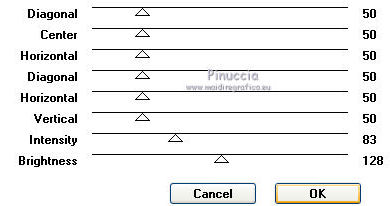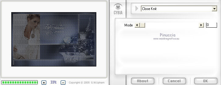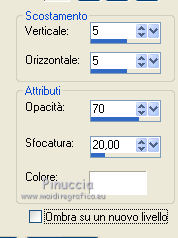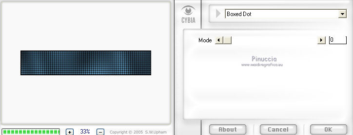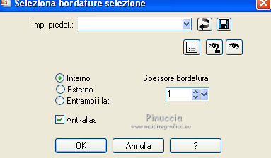 qui puoi trovare qualche risposta ai tuoi dubbi. Se l'argomento che ti interessa non è presente, ti prego di segnalarmelo. Per tradurre questo tutorial ho usato PSP X. Occorrente: Materiale qui Filtri: se hai problemi con i filtri, ricorda di consultare la mia sezione filtri qui Greg's Factory Output II qui Simple qui Cybia Screenworks qui ![]() Metti il pennello di Yoka Kasteel in water nella cartella Pennelli. Attenzione, il pennello è composto da due files che non devono essere separati. Vedi gli appunti sui pennelli qui Imposta il colore di primo piano con #ffffff, e il colore di sfondo con #6d7d9a. 1. Apri una nuova immagine trasparente 800 x 500 pixels, e riempila con il colore di sfondo.2. Effetti>Plugins>Greg's Factory Output - Poolshadow. ![]() 3. Attiva lo strumento Selezione ,clicca sull'icona Selezione personalizzata ![]() e imposta i seguenti settaggi: ![]() 4. Livelli>Nuovo livello raster. Riempi la selezione con il colore di sfondo.Effetti>Plugins>Greg's Factory Output II, con i settaggi precedenti. 5. Livelli>Duplica. 6. Effetti>Plugins>Cybia - Screenworks - Boxed Dot. ![]() Abbassa l'opacità di questo livello al 34%. 7. Livelli>Unisci>Unisci giù. 8. Effetti>Effetti 3D>Sfalsa ombra, con il colore bianco. ![]() Ripeti l'Effetto Sfalsa ombra, cambiando verticale e orizzontale con -5. 9. Selezione>Modifica>Seleziona bordature selezione. ![]() Livelli>Nuovo livello raster. Riempi con il colore di primo piano.Selezione>Deseleziona. 10. Livelli>Unisci>Unisci giù. 11. Effetti>Plugins>Simple - Blintz. 12. Effetti>Effetti di immagine>Scostamento. ![]() 13. Livelli>Duplica. Immagine>Capovolgi. Sposta il livello un po' più in alto, come nell'esempio.![]() 14. Livelli>Unisci>Unisci visibile. 15. Livelli>Nuovo livello raster. Attiva lo strumento Pennello ![]() cerca e seleziona il pennello Kasteel in water e applicalo in alto al centro. Regola>Messa a fuoco>Metti a fuoco. 16. Apri la foto della donna e vai a Modifica>Copia. Torna al tuo lavoro e vai a Modifica>Incolla come nuovo livello. Spostala a sinistra sul bordo e contro il bordo inferiore.Abbassa l'opacità di questo livello al 72%. 17. Apri il tube con lo champagne e vai a Modifica>Copia. Torna al tuo lavoro e vai a Modifica>Incolla come nuovo livello. Spostalo in basso a destra.Cambia la modalità di miscelatura di questo livello in Luminanza (esistente), e abbassa l'opacità all'82%. Regola>Messa a fuoco>Metti a fuoco. 18. Controlla che tutto sia correttamente posizionato. Livelli>Unisci>Unisci tutto. 19. Immagine>Aggiungi bordatura, 1 pixel, simmetriche, con il colore di primo piano. Immagine>Aggiungi bordatura, 15 pixels, simmetriche, con il colore di sfondo. Seleziona questo bordo con la bacchetta magica ![]() 20. Effetti>Plugins>Greg's Factory Output II, come al punto 2. Livelli>Duplica. 21. Effetti>Plugins>Cybia - Screenworks - Close Knit. ![]() Abbassa l'opacità di questo livello al 30%. Livelli>Unisci>Unisci tutto. 22. Immagine>Aggiungi bordatura, 1 pixel, simmetriche, con il colore di primo piano. 23. Attiva lo strumento Testo ![]() ![]() Scrivi il tuo testo in basso a sinistra. Livelli>Converti in livello raster. 24. Effetti>Effetti 3D>Sfalsa ombra, con il colore nero. ![]() Regola>Messa a fuoco>Metti a fuoco. Selezione>Deseleziona. Firma il tuo lavoro e salva in formato jpg. L'immagine principale è finita. Per realizzare lo script ti servirà anche un'immagine di sfondo. 25. Per realizzare lo script - che trovi qui puoi seguire i soliti preliminari descritti alla fine di questo tutorial, e sostituire le immagini, con le dovute variazioni, come spiegato nei precedenti tutorial. Se hai problemi o dubbi, o trovi un link non funzionante, o anche soltanto per un saluto, scrivimi. 25 Luglio 2012 |