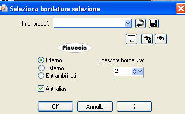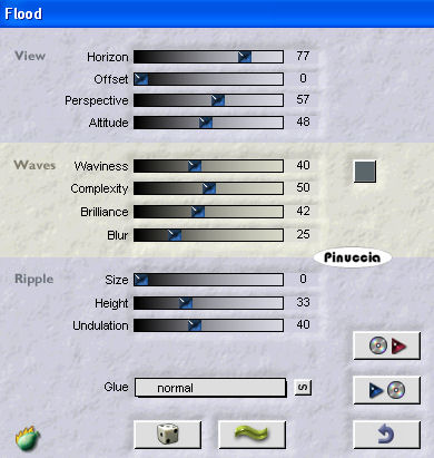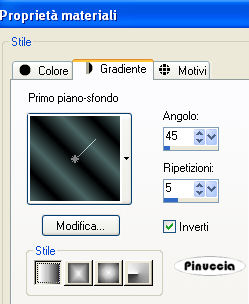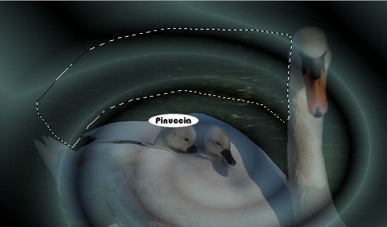 qui puoi trovare qualche risposta ai tuoi dubbi. Se l'argomento che ti interessa non è presente, ti prego di segnalarmelo. Per tradurre questo tutorial ho usato PSP X. Occorrente: Materiale qui I tubes sono di Brigitte e di Jeannette. Filtri: Flaming Pear - Flood qui Screenworks qui Imposta il colore di primo piano con il nero #000000, e il colore di sfondo con #4A6563. Passa il colore di primo piano a Gradiente di primo piano/sfondo: ![]() 1. Apri una nuova immagine trasparente 700 x 500 pixels, e riempila con il gradiente.2. Effetti>Effetti di distorsione>Mulinello - 720 gradi: ![]() 3. Effetti>Effetti di bordo>Aumenta di più. 4. Apri il tube con i cigni e vai a Modifica>Copia. Torna al tuo lavoro e vai a Modifica>Incolla come nuovo livello. Spostalo un po' più in alto, in modo che si trovi al centro della spirale.5. Abbassa l'opacità di questo livello al 50%. 6. Attiva lo strumento Gomma e cancella la parte indicata nella selezione, facendo attenzione a non cancellare i cigni.![]() 7. Riporta l'opacità di questo livello al 100%. 8. Cancella eventuali altre tracce del tube. Dovresti avere pressappoco questo: ![]() 9. Livelli>Unisci>Unisci visibile. 10. Effetti>Plugins>Flaming Pear - Flood: ![]() 11. Selezione>Seleziona tutto. Selezione>Modifica>Contrai - 15 pixels. Selezione>Inverti. 12. Selezione>Modifica>Seleziona bordature selezione: ![]() 13. Livelli>Nuovo livello raster. Riempi con il gradiente.Selezione>Deseleziona. 14. Effetti>Plugins>Screenworks - Dot Screen. ![]() Regola>Messa a fuoco>Metti a fuoco - 4 volte. 15. Apri il tube "LJH flower949" e vai a Modifica>copia. Torna al tuo lavoro e vai a Modifica>Incolla come nuovo livello. Sposta il fiore in basso a destra.Abbassa l'opacità di questo livello al 55%. 16. Livelli>Duplica. Sposta il duplicato accanto all'altro fiore.17. Apri il tube "Mtm-plant011-10 Sept 2007" e vai a Modifica>copia. Torna al tuo lavoro e vai a Modifica>Incolla come nuovo livello. Sposta il tube in basso a sinistra.Nella paletta dei livelli cambia la modalità di miscelatura di questo livello in Luminanza. 18. Livelli>Duplica. Sposta il duplicato accanto al precedente.19. Livelli>Unisci>Unisci visibile. L'immagine è finita. Se vuoi realizzare lo script, ti occorrono anche un'immagine di sfondo. Per realizzare lo script puoi seguire i soliti preliminari descritti alla fine di questo tutorial, e sostituire le immagini, con le dovute variazioni, come spiegato nei precedenti tutorial. Se hai problemi o dubbi, o trovi un link non funzionante, o anche soltanto per un saluto. 7 Marzo 2009 |