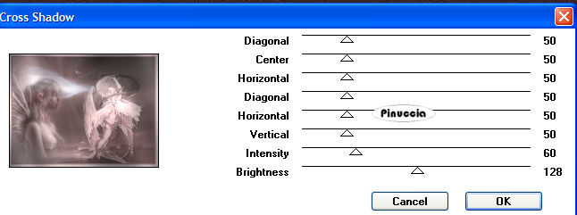 Effetti>Plugins>Graphics Plus - Cross Shadow, con i seguenti settaggi: