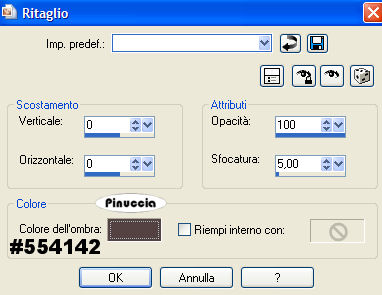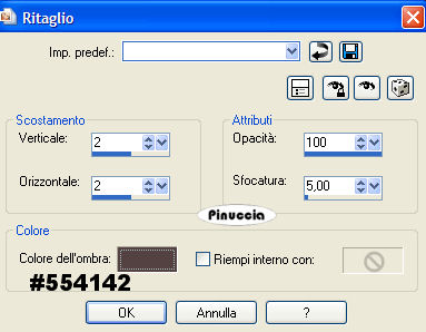 Effetti>Effetti 3D>Ritaglio, con i seguenti settaggi, colore #554142.