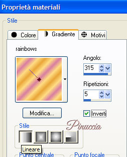 Cerca e seleziona il gradiente Rainbow con i seguenti settaggi: