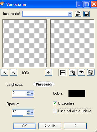 Effetti>Effetti di trama>Veneziana, con i seguenti settaggi, colore nero: