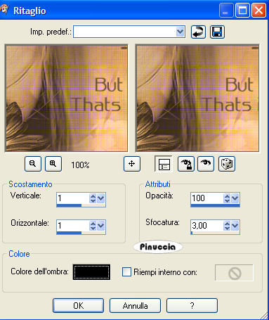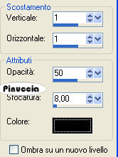 Effetti>Effetti 3D>Sfalsa ombra, con i seguenti settaggi: