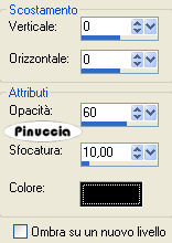 Effetti>Effetti 3D>Sfalsa ombra, con i seguenti settaggi, colore nero.
