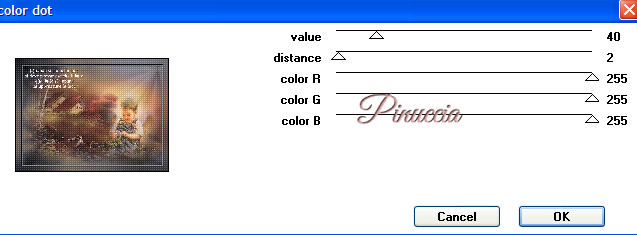 Effetti>Plugins>Penta.com - Color dot, con i seguenti settaggi: