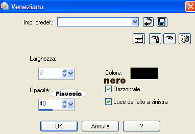 Effetti>Effetti di trama>Veneziana, con i seguenti settaggi, colore nero: