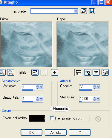 Effetti>Effetti 3D>Sfalsa ombra, con i seguenti settaggi:
