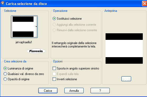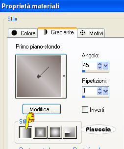 qui puoi trovare qualche risposta ai tuoi dubbi. Se l'argomento che ti interessa non è presente, ti prego di segnalarmelo. Per tradurre questo tutorial ho usato PSP X. Occorrente: Materiale qui Filtri: Penta.com - Color dot qui Toadies - What are you? qui Metti le selezioni nella cartella Selezioni. Apri il font e minimizzalo nella tua area di lavoro. Lo troverai nella lista dei font disponibili quando ti servirà. ![]() 1. Apri una nuova immagine trasparente 850 x 700 pixels. Imposta il colore di primo piano con #776861, e il colore di sfondo con #c6c0c0. Passa il colore di primo piano a Gradiente di primo piano/sfondo, con i seguenti settaggi: ![]() Riempi l'immagine trasparente con il gradiente.Apri Raphaellabackround1 e vai a Modifica>Copia. Torna al tuo lavoro e vai a Modifica>Incolla come nuovo livello. Cambia la modalità di miscelatura di questo livello in Luce netta, e abbassa l'opacità all'80%. Apri Raphaellabackground2 e vai a Modifica>Copia. Torna al tuo lavoro e vai a Modifica>Incolla come nuovo livello. Livelli>Nuovo livello raster. Selezione>Carica/Salva selezione>Carica selezione da disco. Cerca e carica la selezione jet-raphaella1: ![]() Riporta il colore di primo piano al colore #776861. Riempi la selezione con il colore di primo piano.Cambia la modalità di miscelatura di questo livello in Filtra, e abbassa l'opacità al 50%. Mantieni selezionato. Livelli>Nuovo livello raster. Effetti>Effetti 3D>Sfalsa ombra: ![]() Selezione>Deseleziona. Apri Raphaella stroke, e vai a Modifica>Copia. Torna al tuo lavoro e vai a Modifica>Incolla come nuovo livello. Cambia la modalità di miscelatura di questo livello in Sovrapponi, e abbassa l'opacità al 50%. Apri Raphaella lines e vai a Modifica>Copia. Torna al tuo lavoro e vai a Modifica>Incolla come nuovo livello. Cambia la modalità di miscelatura di questo livello in Moltiplica, e mantieni l'opacità al 100%. Apri Raphaellablock e vai a Modifica>Copia. Torna al tuo lavoro e vai a Modifica>Incolla come nuovo livello. Cambia la modalità di miscelatura di questo livello in Moltiplica, e mantieni l'opacità al 100%. Livelli>Nuovo livello raster. Selezione>Carica/Salva selezione>Carica selezione da disco. Cerca e carica la selezione jet-raphaella2: ![]() Lo spazio selezionato è ristrettissimo, per questo dovrai ingrandire l'immagine, attivando lo zoom o usando la rotellina del mouse
