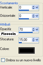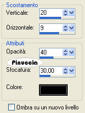 ![]() Riempi la selezione con il colore di primo piano #776861.Cambia la modalità di miscelatura di questo livello in Moltiplica, e mantieni l'opacità al 100%. Apri jet - woman7b - maart-2009 e vai a Modifica>Copia. Torna al tuo lavoro e vai a Modifica>Incolla come nuovo livello. Sposta il tube al centro.Effetti>Effetti 3D>sfalsa ombra: ![]() Duplica questa immagine usando sulla tastiera la combinazione di tasti shift(maiuscola)+D (oppure vai a Finestra/Duplica). Livelli>Unisci>Unisci tutto. Modifica>Copia. Torna al tuo lavoro originale. Livelli>Nuovo livello raster. Selezione>Carica/Salva selezione>Carica selezione da disco. Cerca e carica la selezione jet-raphaella3: ![]() Modifica>Incolla nella selezione. Selezione>Deseleziona. Livelli>Disponi>Sposta giù. Regola>Messa a fuoco>Metti a fuoco. Effetti>Effetti 3D>Sfalsa ombra: ![]() Livelli>Duplica. Immagine>Rifletti. Livelli>Nuovo livello raster. Selezione>Carica/Salva selezione>Carica selezione da disco. Cerca e carica la selezione jet-raphaella4: ![]() Riempi la selezione con il colore di sfondo #c6c0c0.Effetti>Plugins>Penta.com - Color dot, con i settaggi standard. ![]() Selezione>Deseleziona. Cambia la modalità di miscelatura di questo livello in Sovrapponi, e abbassa l'opacità al 25%. Livelli>duplica. Immagine>Capovolgi. Livelli>Nuovo livello raster. Selezione>Carica/Salva selezione>Carica selezione da disco. Cerca e carica la selezione jet-raphaella5: ![]() Riempi la selezione con il colore di primo piano #776861.Selezione>Deseleziona. Cambia la modalità di miscelatura di questo livello in Moltiplica, e abbassa l'opacità al 36%. Attiva lo strumento Testo , font Laptop, crea come vettore.Chiudi il colore di primo piano e mantieni il colore di sfondo con #c6c0c0. Regola la dimensione a seconda del testo e della versione di PSP che stai usando. Scrivi il testo in alto a sinistra. Livelli>Converti in livello raster. Cambia la modalità di miscelatura di questo livello in Filtra, e abbassa l'opacità al 50%. Chiudi il livello del tube e rimani posizionato sul livello sottostante. Livelli>Unisci>Unisci visibile. Questa dovrebbe essere la tua paletta dei livelli. ![]() Selezione>Seleziona tutto. Selezione>Modifica>Contrai - 20 pixels. Selezione>inverti. Effetti>Plugins>Toadies - What are you, con i settaggi standard. ![]() Selezione>Innalza selezione a livello. Cambia la modalità di miscelatura di questo livello in Moltiplica. Livelli>Unisci>Unisci giù. Selezione>Inverti. Effetti>Effetti 3D>sfalsa ombra: ![]() Selezione>Deseleziona. Riapri il livello della donna. Immagine>Aggiungi bordatura, 1 pixel, simmetriche, con il colore #776861. Aggiungi il tuo nome e/o il tuo watermark e salva in formato jpg. ![]() Se hai problemi o dubbi, o trovi un link non funzionante, o anche soltanto per un saluto, scrivimi 23 Marzo 2009 |