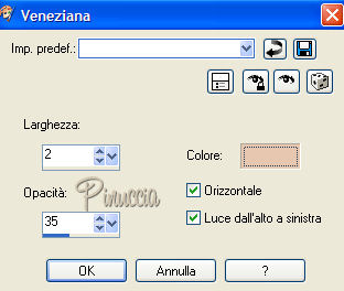 62. Effetti>effetti di trama>Veneziana, con i seguenti settaggi, con il colore scuro #e8c7b0.