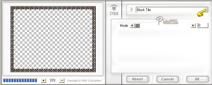 66. Effetti>Plugins>Cybia - Screenworks, apri il menu delle impostazioni e seleziona Block Tile, con i settaggi standard: