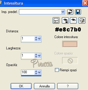 27. Effetti>Effetti di trama>Intessitura, con i seguenti settaggi:
