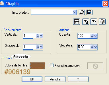 Effetti>Effetti 3D>Sfalsa ombra, con i seguenti settaggi, colore #906139
