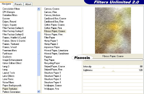 Effetti>Plugins>Filters Unlimited - Paper Textures - Fibrous paper coarse, con i settaggi standard.