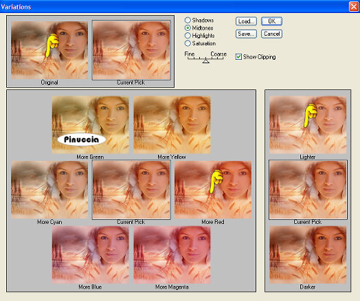 Clicca prima su Original, e poi 1 volta su more red e una volta su Lighter, quindi ok.