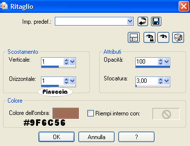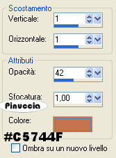 Effetti>Effetti 3D>Sfalsa ombra, con i seguenti settaggi, colore #c5744f.