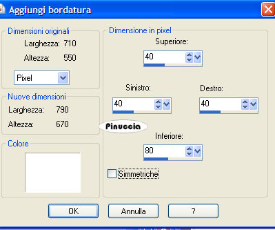 Immagine>Aggiungi bordatura, con il colore bianco, simmetriche non selezionato, con i seguenti settaggi: