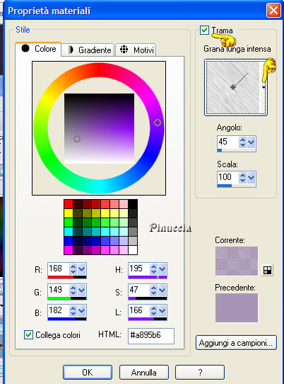cerca e seleziona la trama Grana lunga intensa, con i seguenti settaggi: