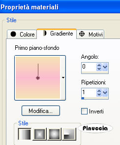 Passa il colore di primo piano a Gradiente di primo piano/sfondo, lineare, con i seguenti settaggi: