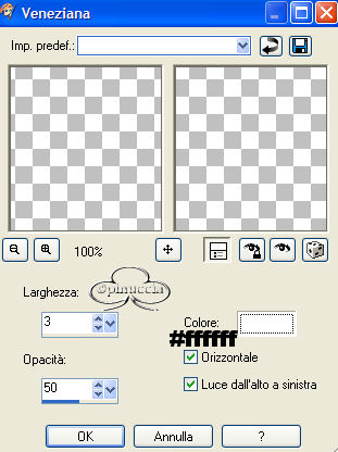 Effetti>Effetti di trama>Veneziana, con i seguenti settaggi, colore bianco.