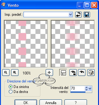 Effetti>Effetti di distorsione>Vento, da sinistra, intensità 70.