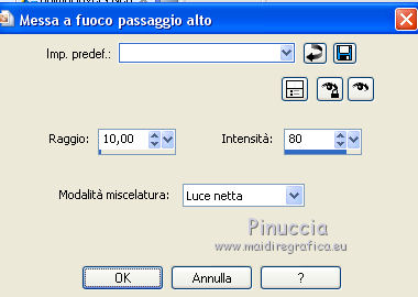 5. Regola>Messa a fuoco>Messa a fuoco passaggio alto, con i settaggi precedenti.