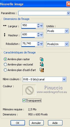 1. Ouvrir une nouvelle image transparente 950 x 600 pixels.