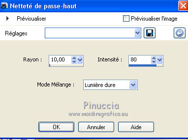 5. Réglage>Netteté>Netteté Passe-haut, comme précédemment.
