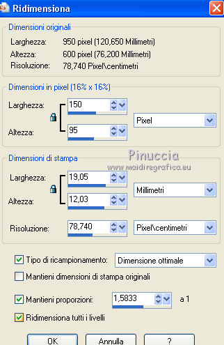 Immagine>Ridimensiona, 150 pixels di larghezza, tutti i livelli selezionato.