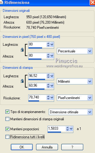 34. Immagine>Ridimensiona, all'80%, tutti i livelli non selezionato.